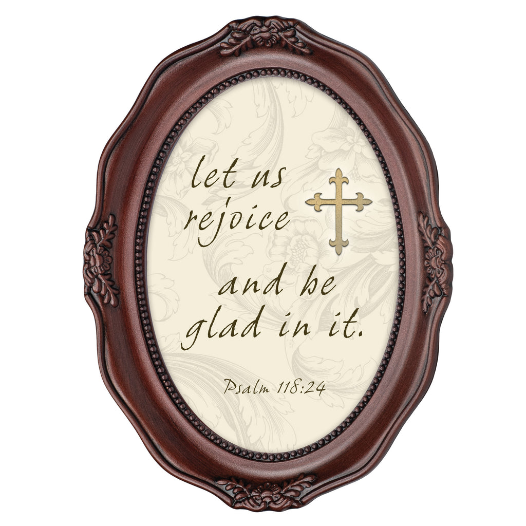 Cottage Garden inspirational and sentimental products are both lovely and classic in style. Be encouraged by a message that reads, "Let us rejoice and be glad in it. Psalm 118:24." Designed by artists in the Heartland of America, Cottage Garden’s Collections reach a variety of tastes and have a wide range of occasions for gifting. Beautiful oval photo frame with elegant, scalloped edge detail; Adds classic interest to your decorating spaces. Antique-looking frame measures approximately 8.5 x 6.5 inches; Replace artwork with a oval shaped 5 x 7 inch personal photo; Features scripture from Psalm 118:24. Designed with both an easel back and hardware to display on a wall; Equipped to either be in portrait or landscape views. Perfect size to display on table top, nestle in shelf arrangements or placed atop a mantel. Boxed within protective packaging: Ready to be presented and thoughtfully gifted.